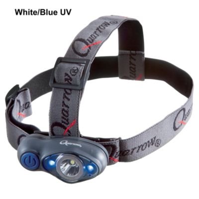 Bright, 35-lumen white LED Two UV LEDs reveal fluorescent items or recharge glow lures Comfortable headband with two-way adjustable strap Push the button, and a bright, 35-lumen white LED illuminates your night.