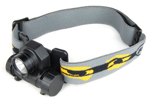 - Multi-purpose, indoor/outdoor LED headlamp with headband and push-button on/off switch